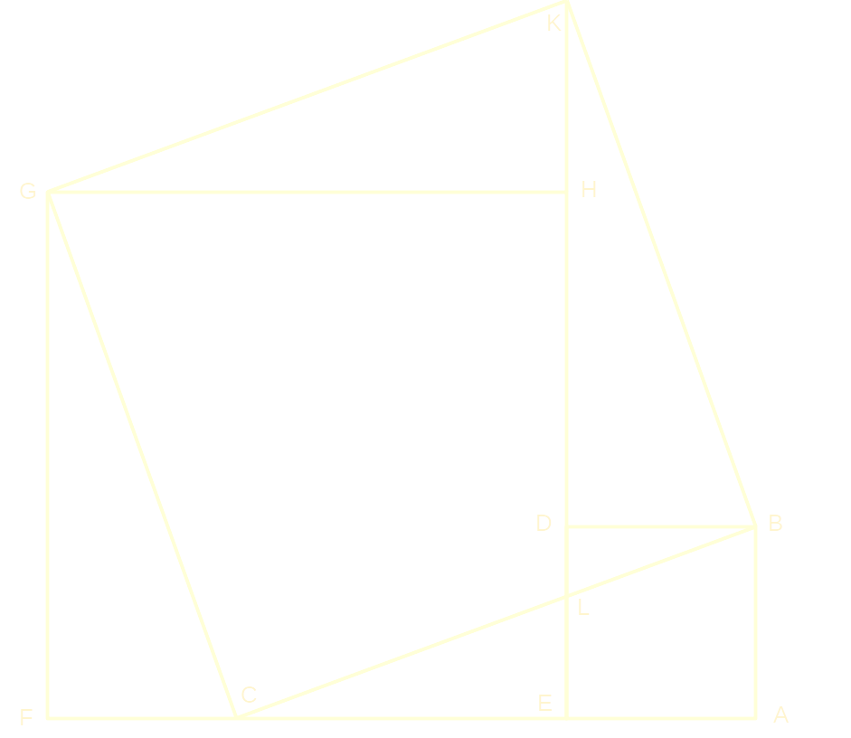 This can be concluded by reaching the region CBDHG either from the two squares FABDHG or the large square CBKG subtracting the corresponding the right pair of triangles.